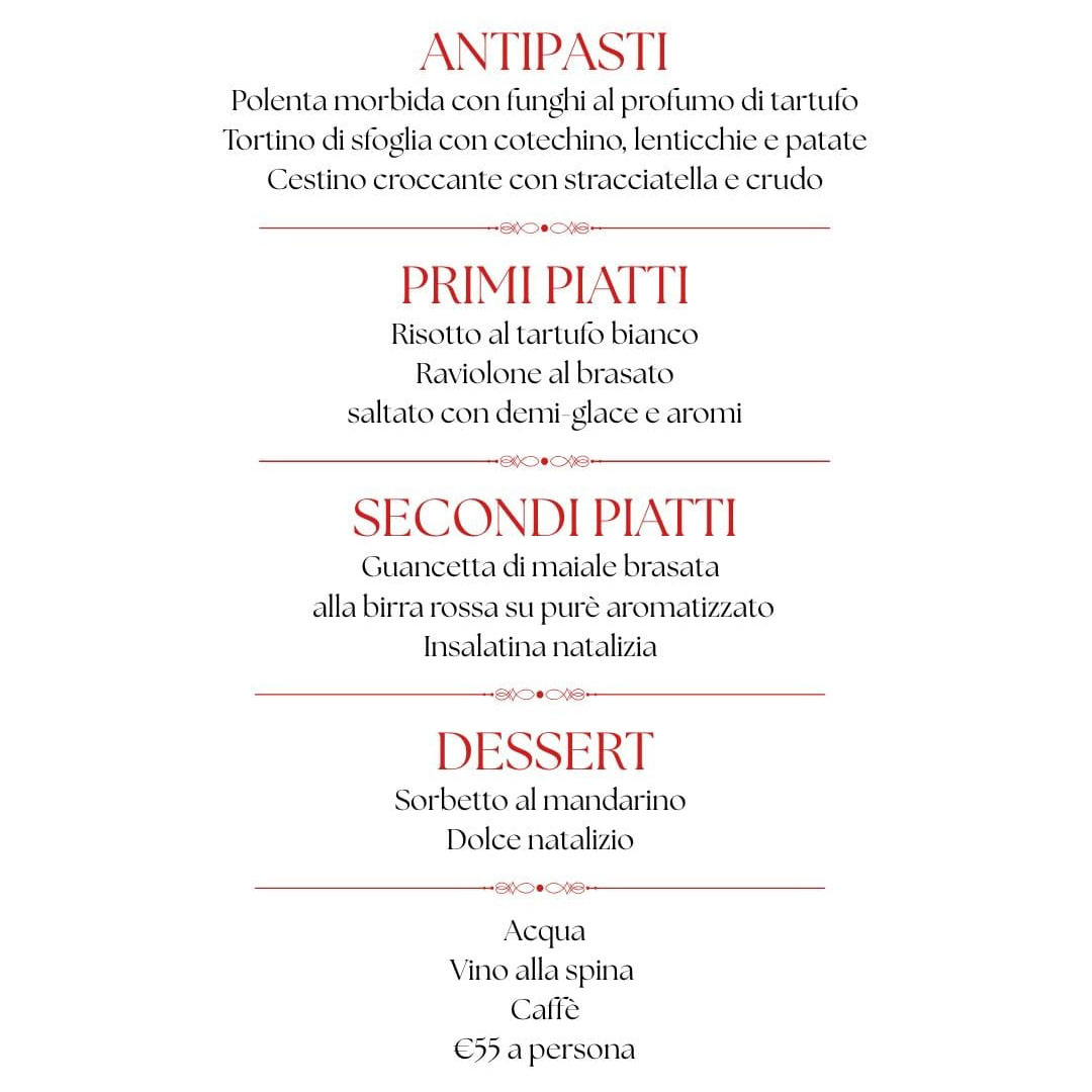 Quest’anno, rendi il tuo pranzo di Natale indimenticabile con il nostro speciale Menù di Natale! Un viaggio tra sapori unici e piatti raffinati, perfetti per celebrare la magia delle feste con chi ami di più.